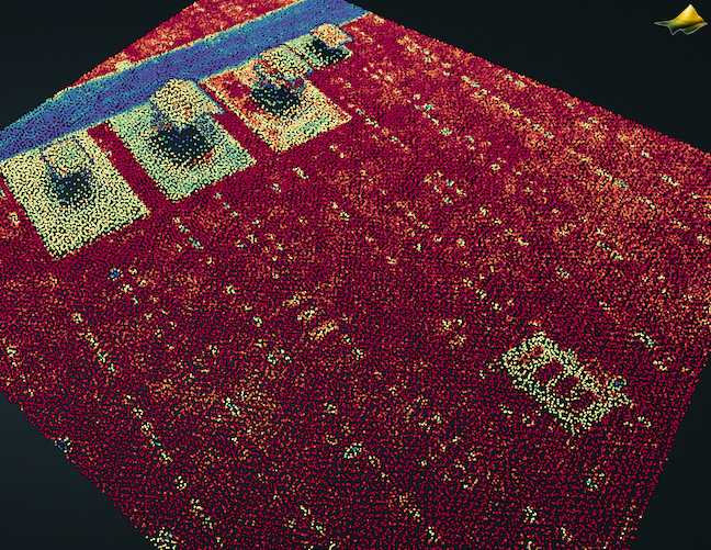 Lidar point cloud colored by intensity of the neighborhood destroyed by the Eaton Fire. Data Source: OT: Quantifying Sediment Mobilization by Wildfire, CA 2025