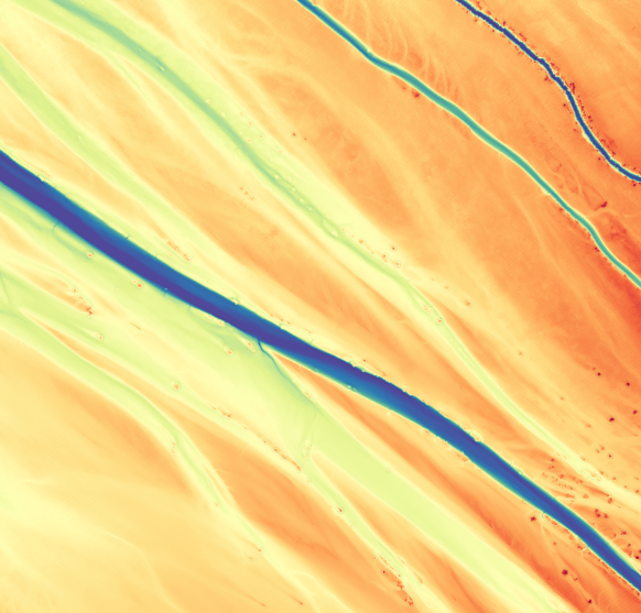 Digital Elevation Model of dry river channels in Death Valley, CA. Data Source: Meandering Channels in Death Valley, CA 2019
