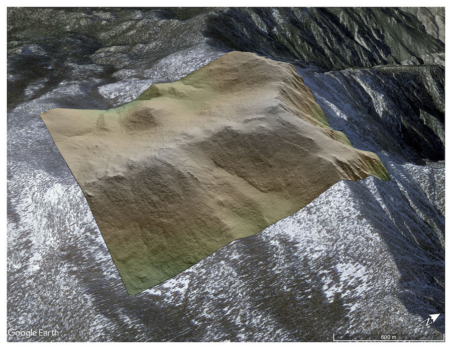 Digital Terrain Model (DTM) of San Jacinto Peak draped on Google Earth Imagery