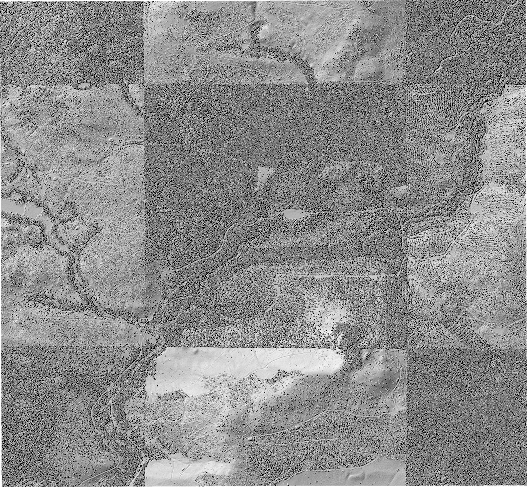 Hillshade of forest management region in eastern Washington. Data Source: NOAA: 2016 USFS Lidar: Colville Forest East, WA.