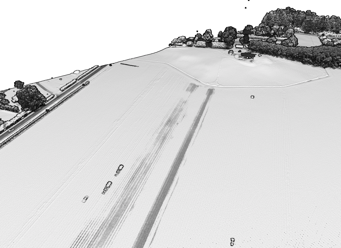 Point cloud colored by elevation. Hamilton, New Zealand suburbs.