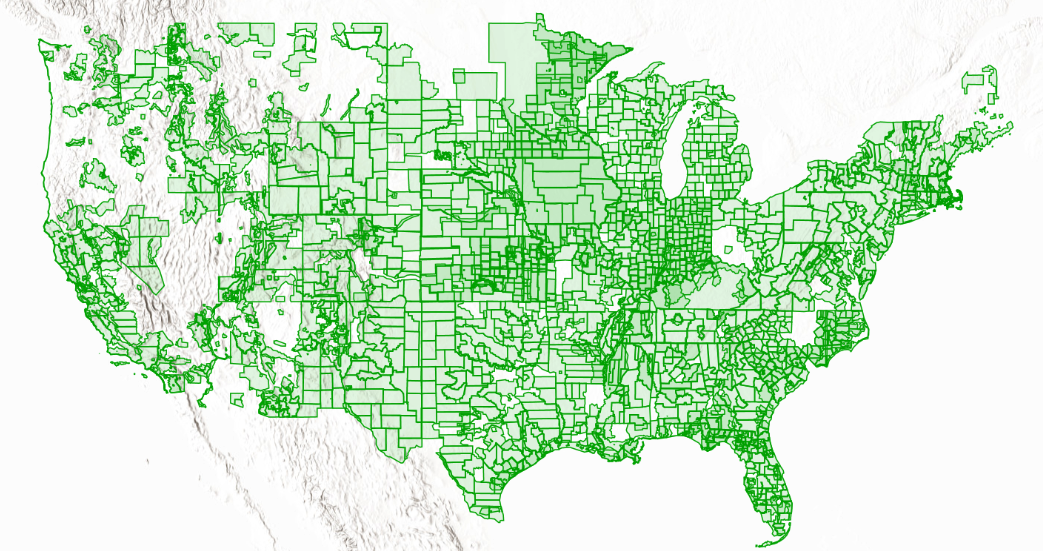Green polygons indicate the coverage of 3DEP lidar data currently (as of 11/16/2023) available for download. For up-to-date lidar data coverage, including "in-progress" datasets, see the USGS 3DEP website.
