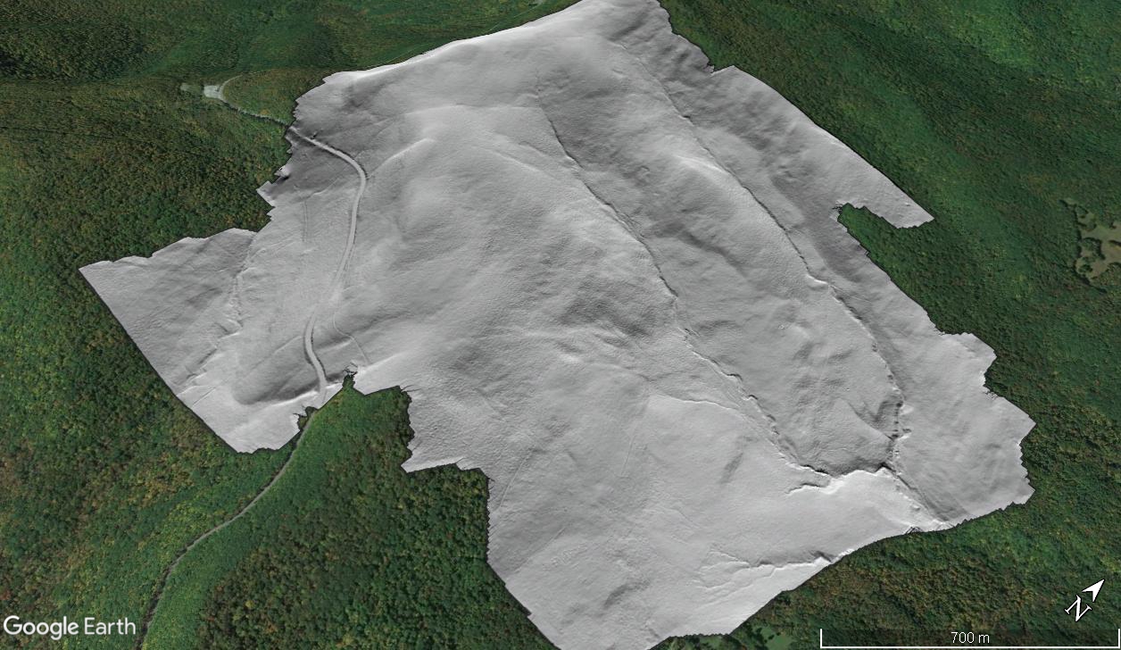 Digital terrain model (DTM) of gravel-bedded rivers near North Adams, Massachusetts overlain on Google Earth imagery.