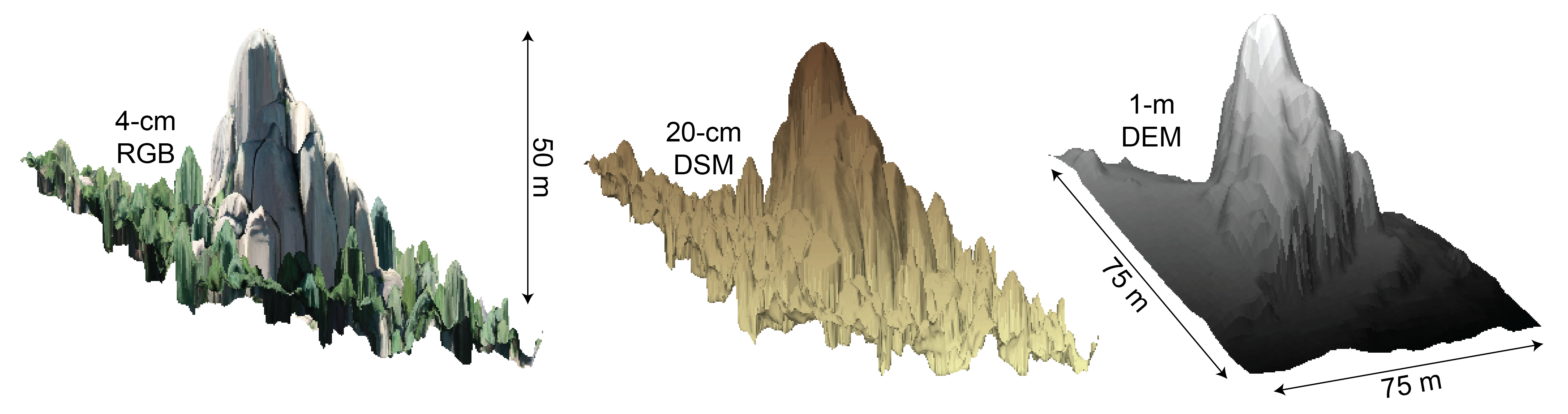 NCALM lidar data reveals large bedrock tors in the Rampart Range, CO. By complementing analyses of lidar data with drone surveys (credit: Joe McGlinchy, Earth Lab, CIRES, CU), the research team is quantifying how bedrock exposure systematically varies as a function of elevation and aspect in this setting. They hypothesize that spatial patterns in soil cover and bedrock exposure are fundamental to explaining when and where floods are triggered during large rainstorms.