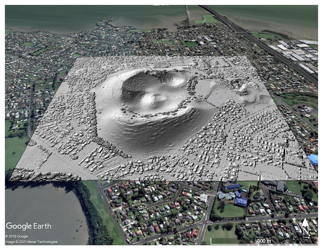 Hillshade of Mangere Mountain - one of the largest volcanic cones in the Auckland volcanic field.