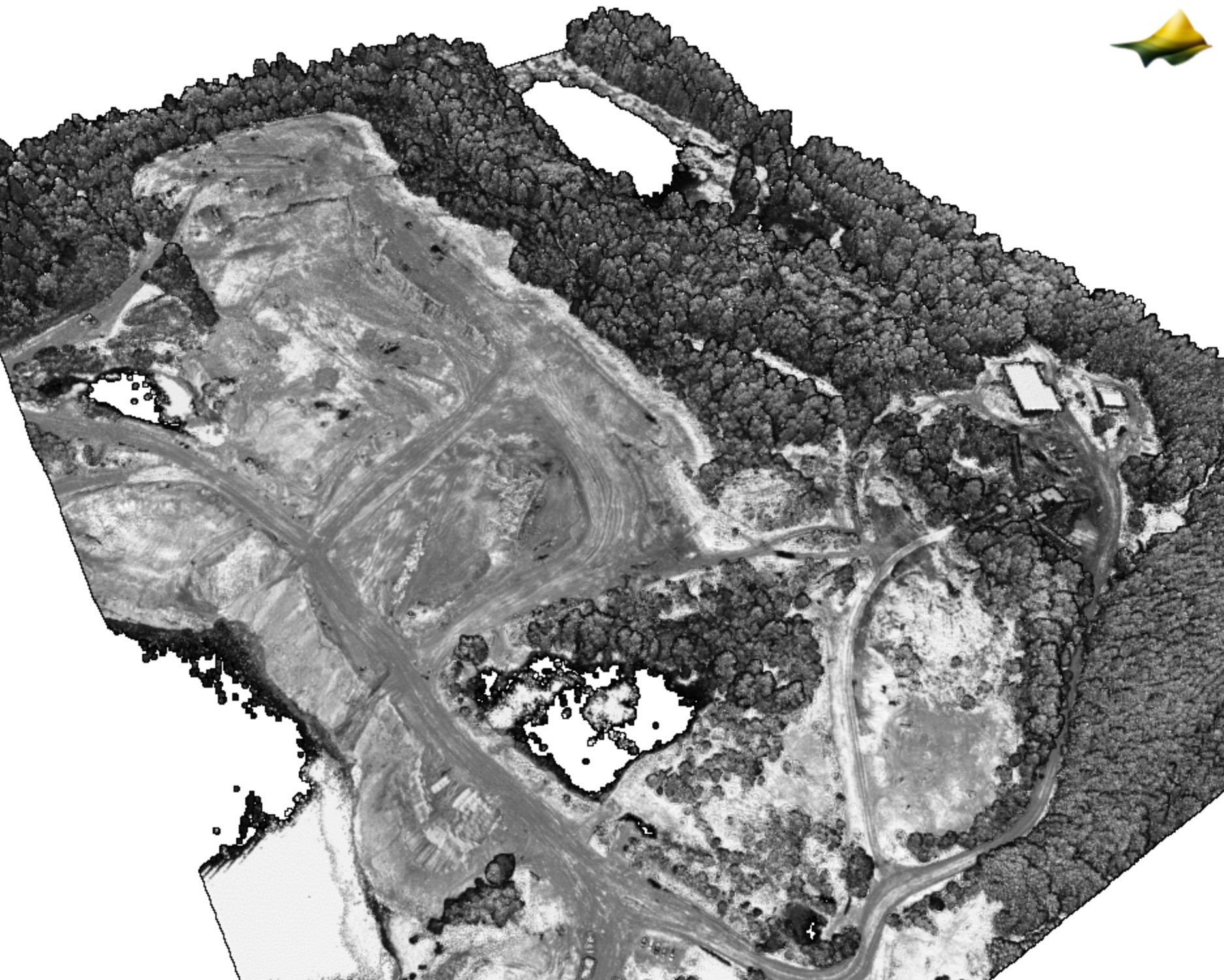 3D point cloud colored by intensity over a section of the John Henry Mine from the dataset: Lidar Survey of John Henry Mine, WA 2023