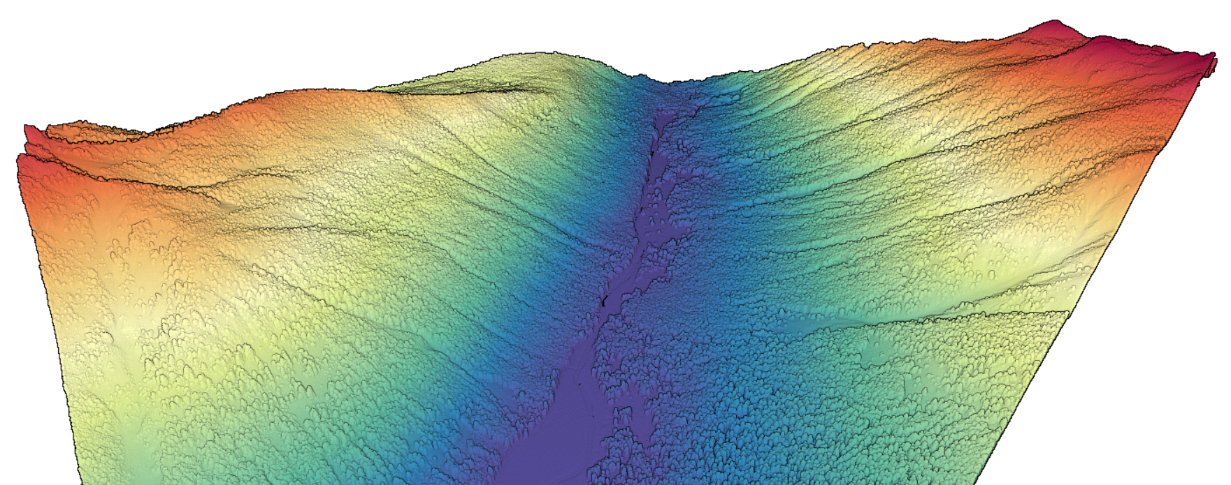 3D point cloud colored by elevation of the Eastern Cascade Mountains.