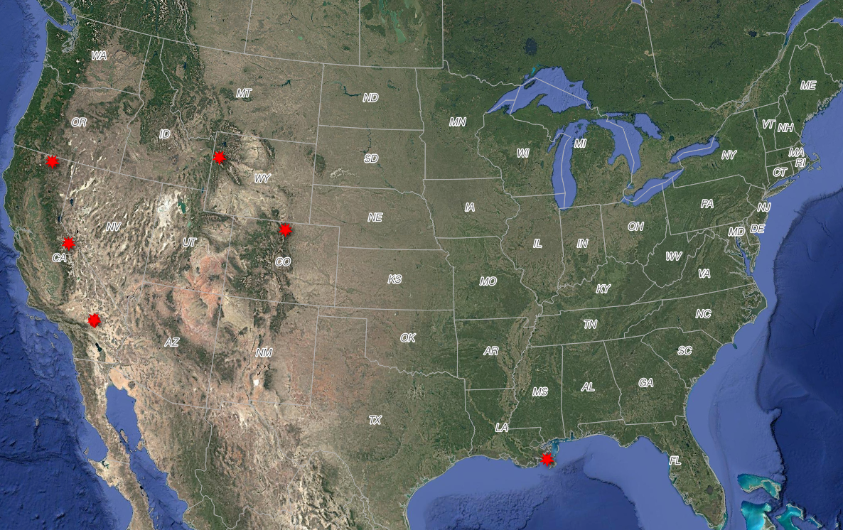 Six new NCALM (National Center for Airborne Laser Mapping) datasets covering portions of California, Colorado, Louisiana, and Wyoming are now available from OpenTopography. NCALM is an NSF-funded center that supports the use of airborne laser mapping technology (a.k.a. lidar) in the scientific community and is jointly operated by the Department of Civil & Environmental Engineering, Cullen College of Engineering, University of Houston and the Department of Earth and Planetary Science, University of California, Berkeley. OpenTopography is the primary distributor of NCALM data.