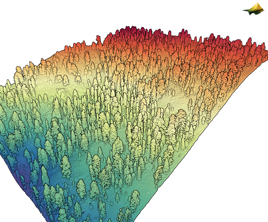 Point cloud colored by elevation of a forested slope for the dataset, Topographic and Lithologic Controls on Subsurface Weathering, CA 2021