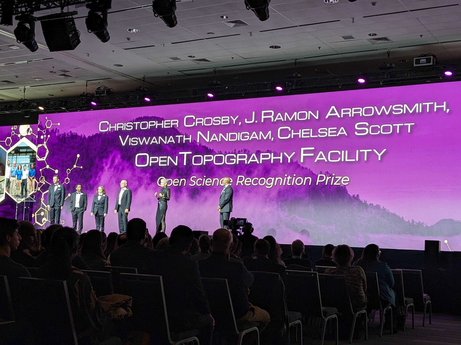 The SDSC, EarthScope and ASU winners said that the AGU Open Science award would not have been achievable without the unwavering dedication and collective efforts of every member on the OpenTopography team, including Matthew Beckley, Minh Phan, Kai Lin, Emily Zawacki and Kate Kaya, as well as multiple past team members and interns.