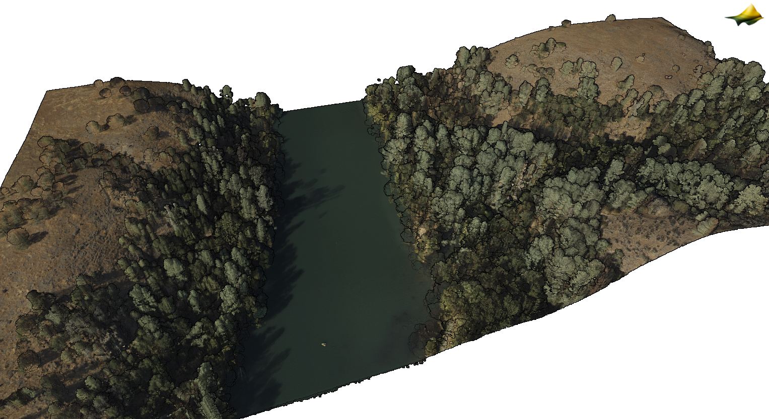 Point cloud colored by RGB values for a section of the Sacramento River near Seven Mile Creek