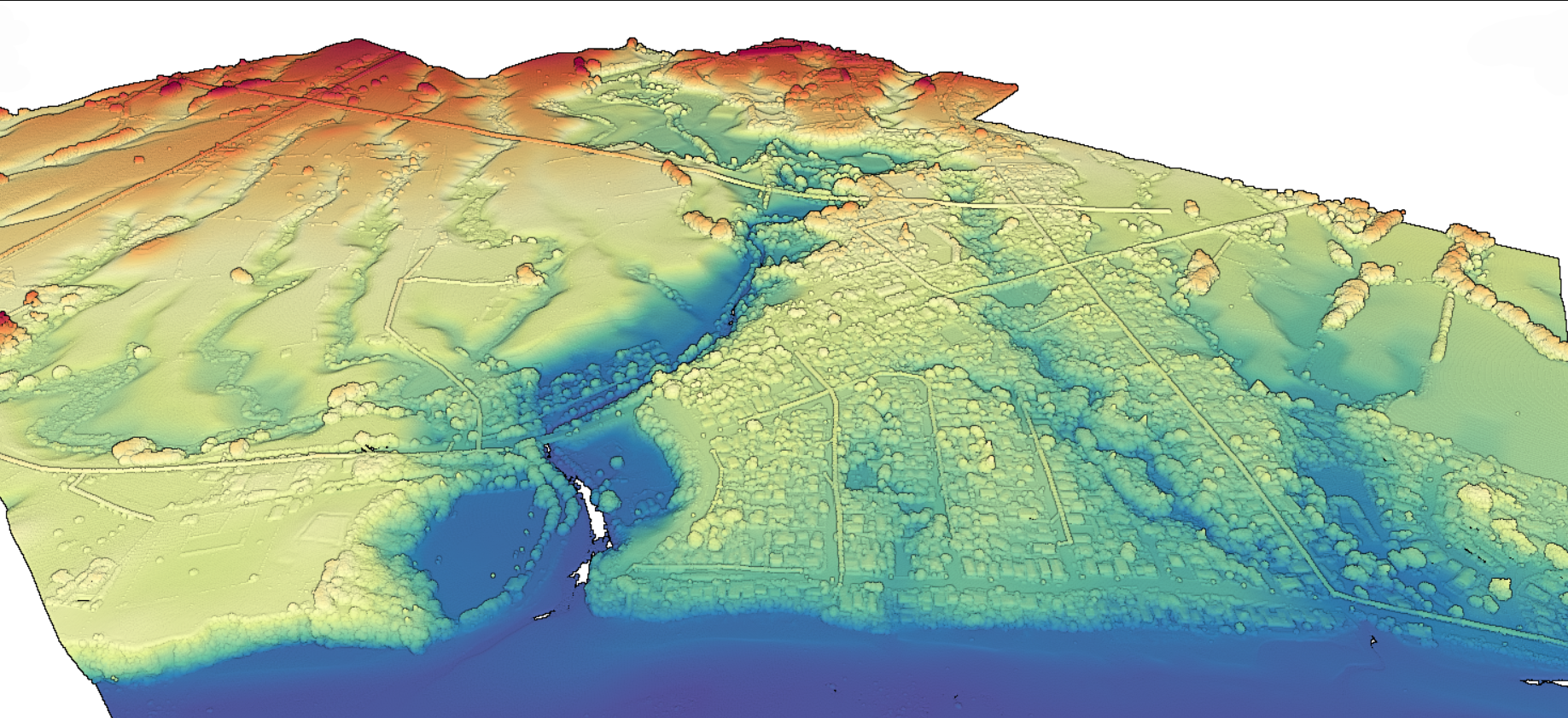3D point cloud colored by elevation of Ōakura in the Taranaki region, NZ.